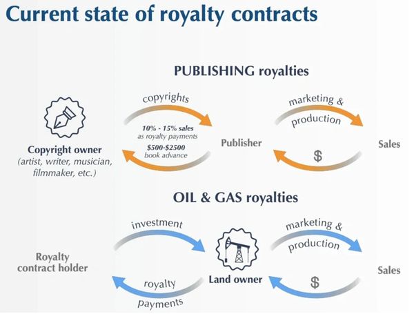 Publishers, who don't work anymore, are removed as a necessary trusted third party. The new publishing royalties mean the Creator will be treated similar to land owners in Oil & Gas royalty contracts.